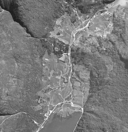 Ca. år: 1967, Flyfoto over Loen-bygda