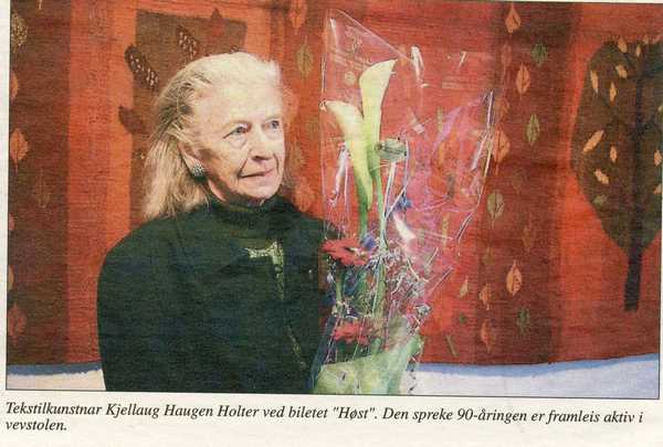 Kjellaug Haugen Holter var fødd på garden Haugen i Loen 7. mai 1922. Ho bur no i Oslo, og har hytte i Olden. I samband med 90- årsjubileet har Sogn og Fjordane Kunstmuseum invitert kunstnaren til utstilling i Anders Svor museum denne sommaren.